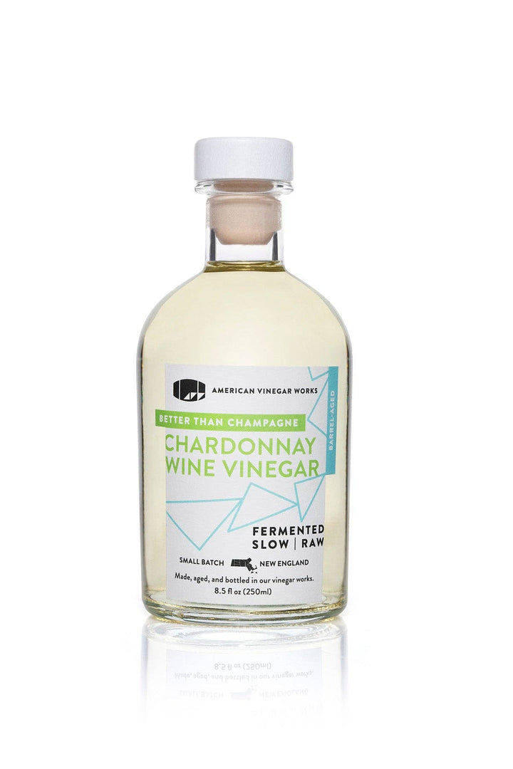 Great for: Vinaigrettes, beurre blanc, finishing hot sauces, and mignonette for oysters. Fermentation Base Chardonnay, California The most delicate of our wine vinegars. Bright and clean acid with a slightly nutty layer. Slow fermented. Aged in oak barrels.