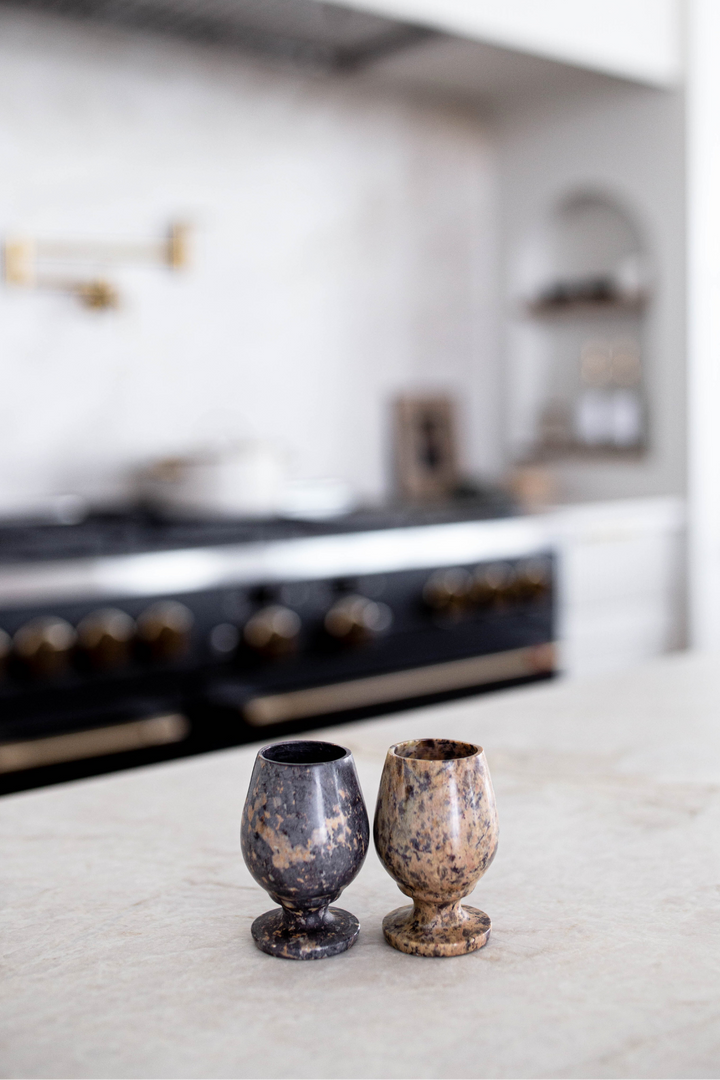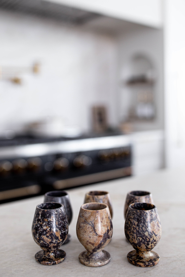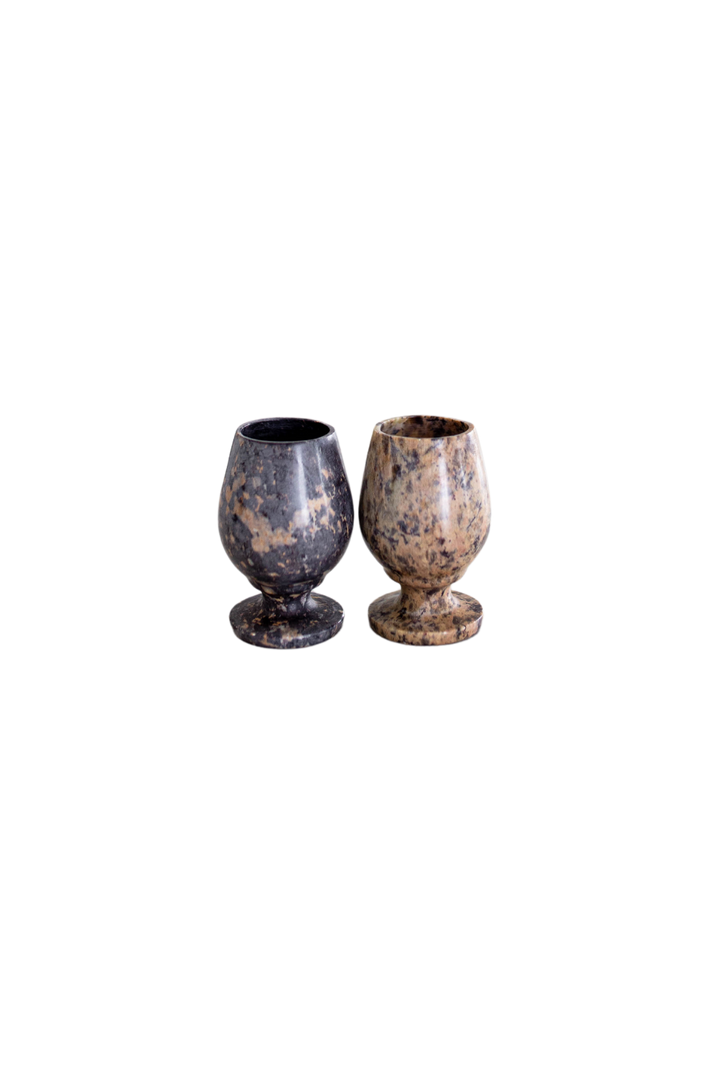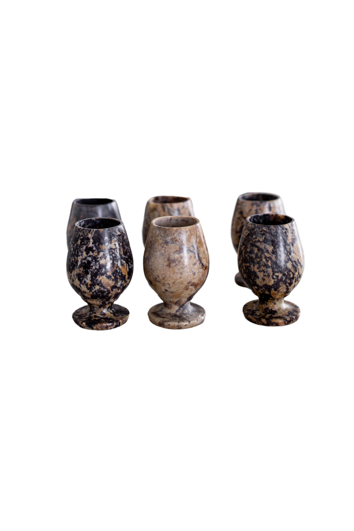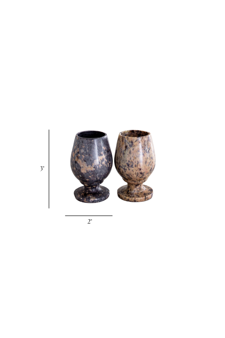 The Brown Soapstone Shot Glasses Set is crafted with precision and elegance for a special touch to your social gatherings. These shot glasses are made from stunning Soapstone and are perfect for serving your favorite beverages. 3" Height x 2" Width x 1" Opening Slight variations in finish are expected.