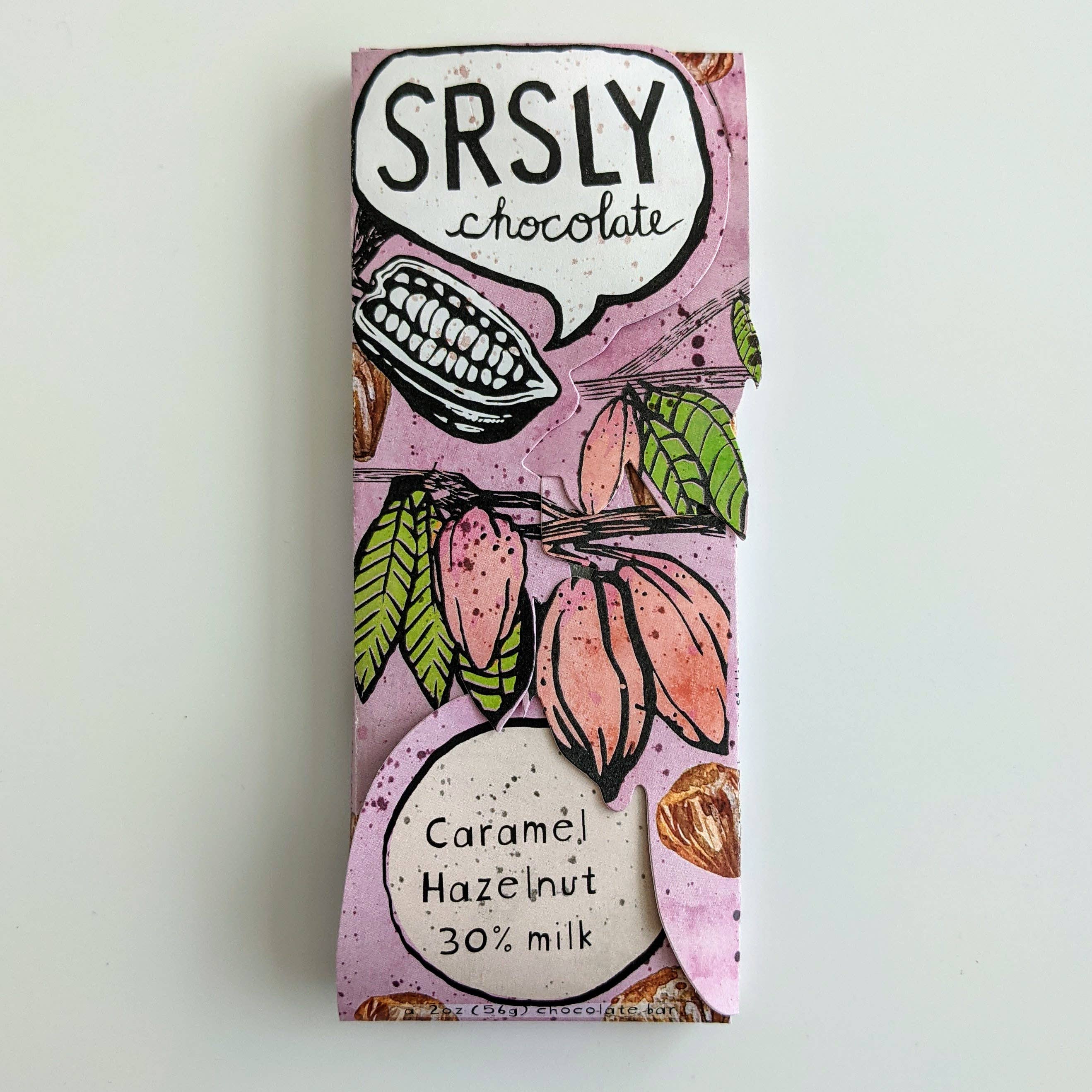 30% Milk chocolate sweetened with caramelized sugar and topped with Oregon hazelnuts.