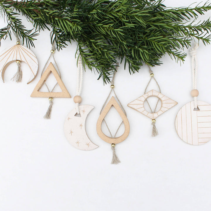 These small ceramic and fiber sculptures make a perfect holiday gift. Slightly smaller and lighter than our Totem Sculptures, they are more appropriate to hang on a tree. Yet they are modern and stylish enough to be used as home decor year-round.