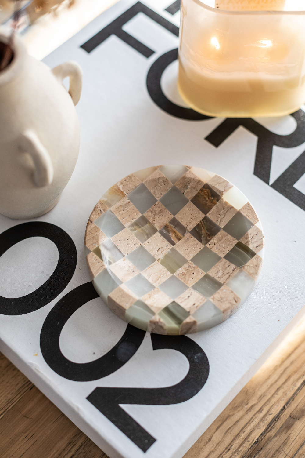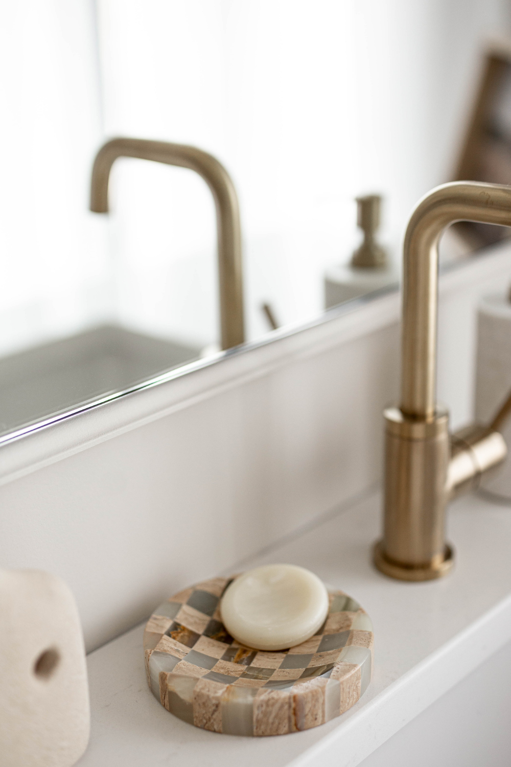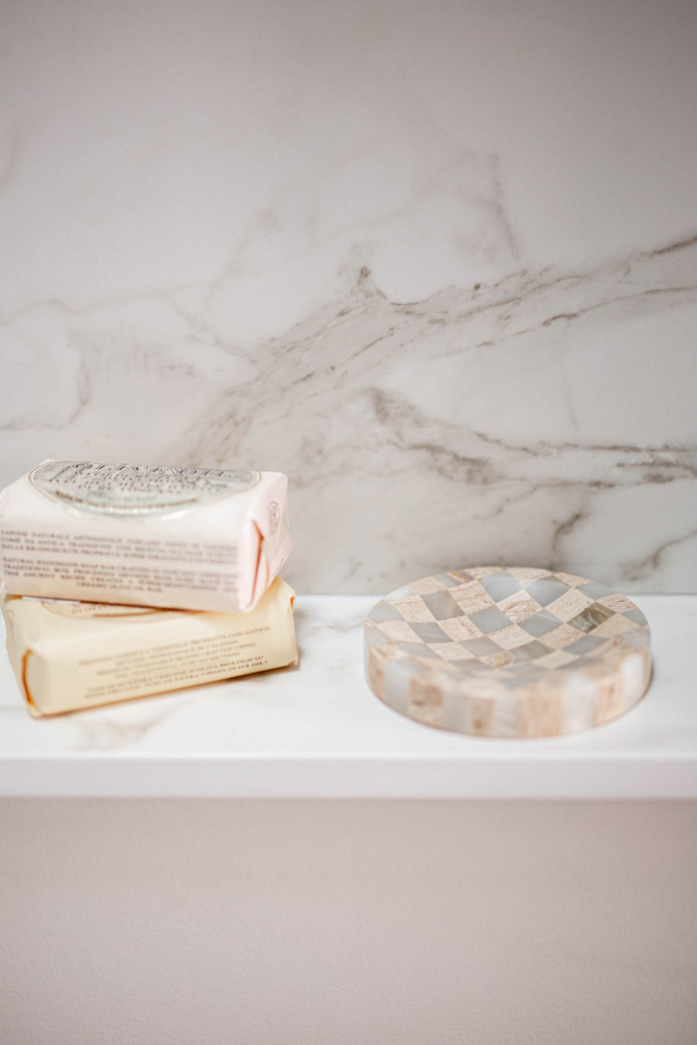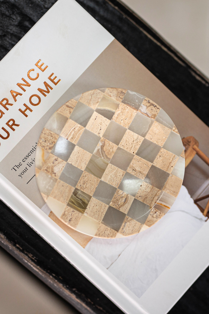 Checkered Travertine & Marble Soap Dish