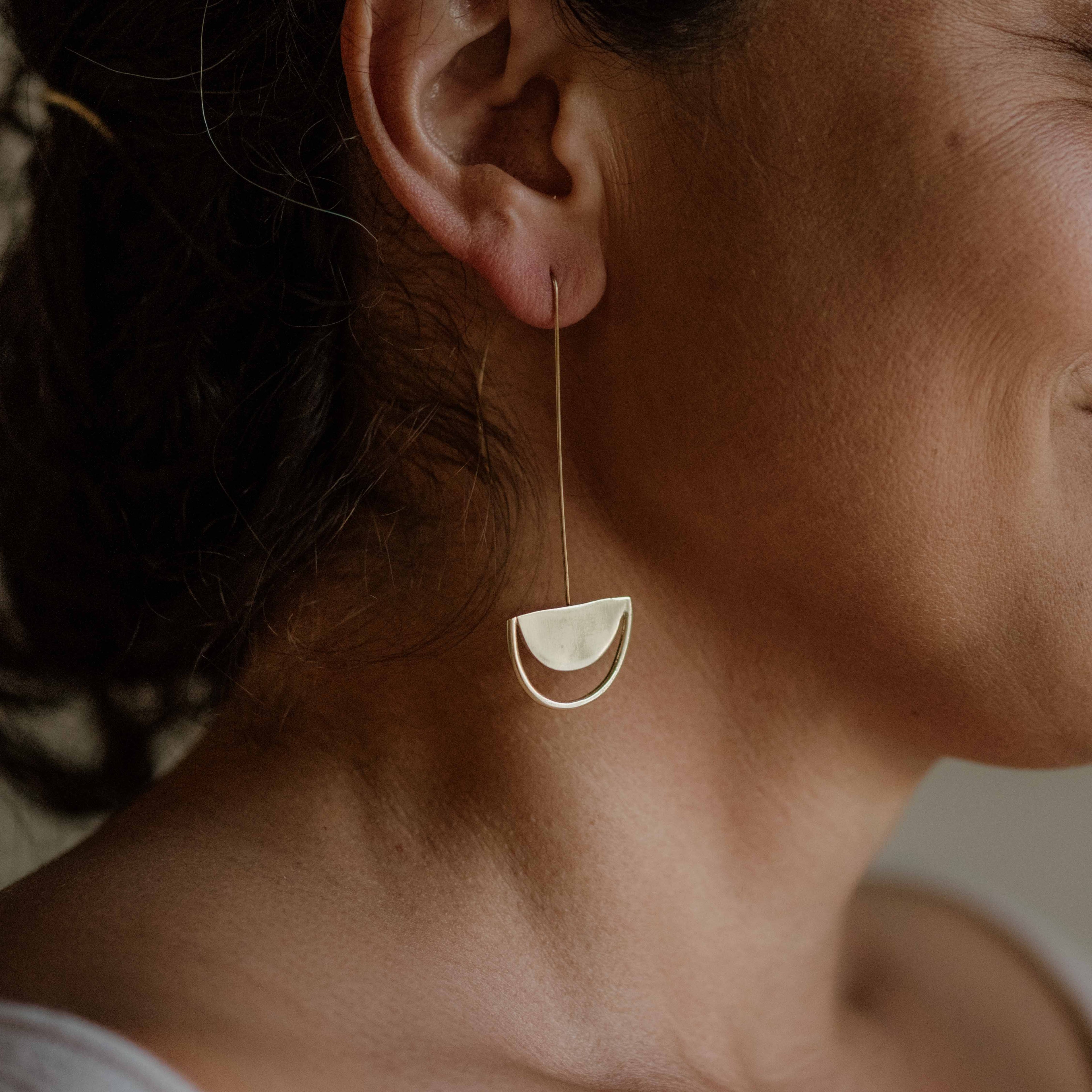 Discover the elegant simplicity of Iris Drops Earrings. Crafted from brass, these earrings feature a unique crescent shape and drop chain design. Adding a touch of sophistication to any outfit, these earrings perfectly combine style and quality. Elevate your jewelry collection with Iris Drops Earrings today.