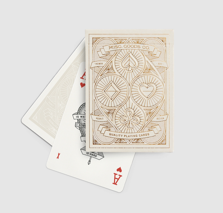 Introducing the Misc. Goods Co. Premium Playing Cards crafted by owner and designer Tyler Deeb. Launched through a Kickstarter campaign in 2012 these cards redefine traditional gaming with a fresh artistic approach. The deck boasts a stunning array of all-new illustrations created by Tyler Deeb himself.