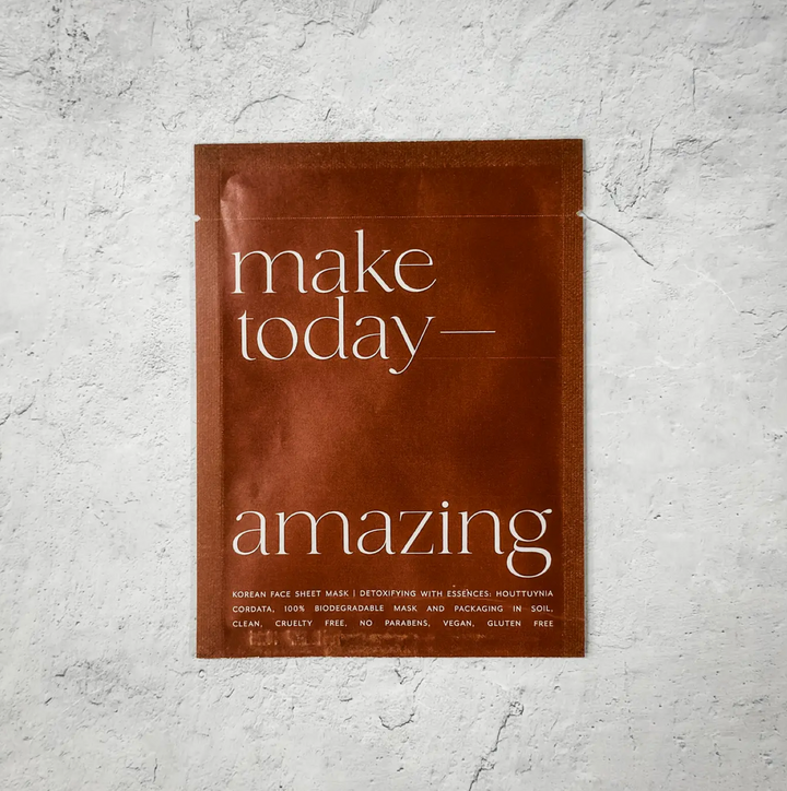 Make Today Amazing- with a detoxifying and purifying sheet mask to clear congested pores and give skin new life. Made from sustainably sourced Tencel, a 100% biodegradable skin-friendly material that can fully revert to nature, it is dipped in powerful essences, and acts quickly to restore and improve the skin. What it is A Korean face sheet mask with detoxifying and purifying qualities What it does Detoxifies, purifies, anti-aging detox calms irritated skin and has antioxidant and antibacterial properties Key Ingredients Houttuynia Cordata Skin Type Oily, Combination, Sensitive, Aging.