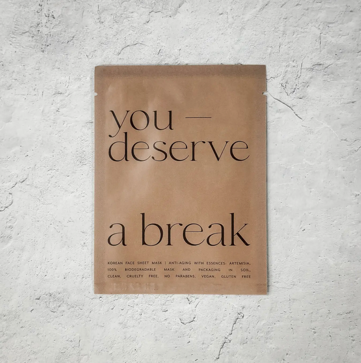 You Deserve a Break- from the stresses of everyday life. This calming and soothing sheet mask evens the skin tone and provides instant relief to irritated or dull skin. Made from sustainably sourced Tencel, a 100% biodegradable skin-friendly material that can fully revert to nature, it is dipped in powerful essences, and acts quickly to restore and improve the skin. What it isWhat it is An anti-aging Korean face sheet mask that helps improve overall skin tone and luminosity. What it does Improves skin tone, calms redness, soothes and cools skin, improves elasticity and luminosity Key Ingredients Artemisia Skin Type Sensitive, aging, sun damaged