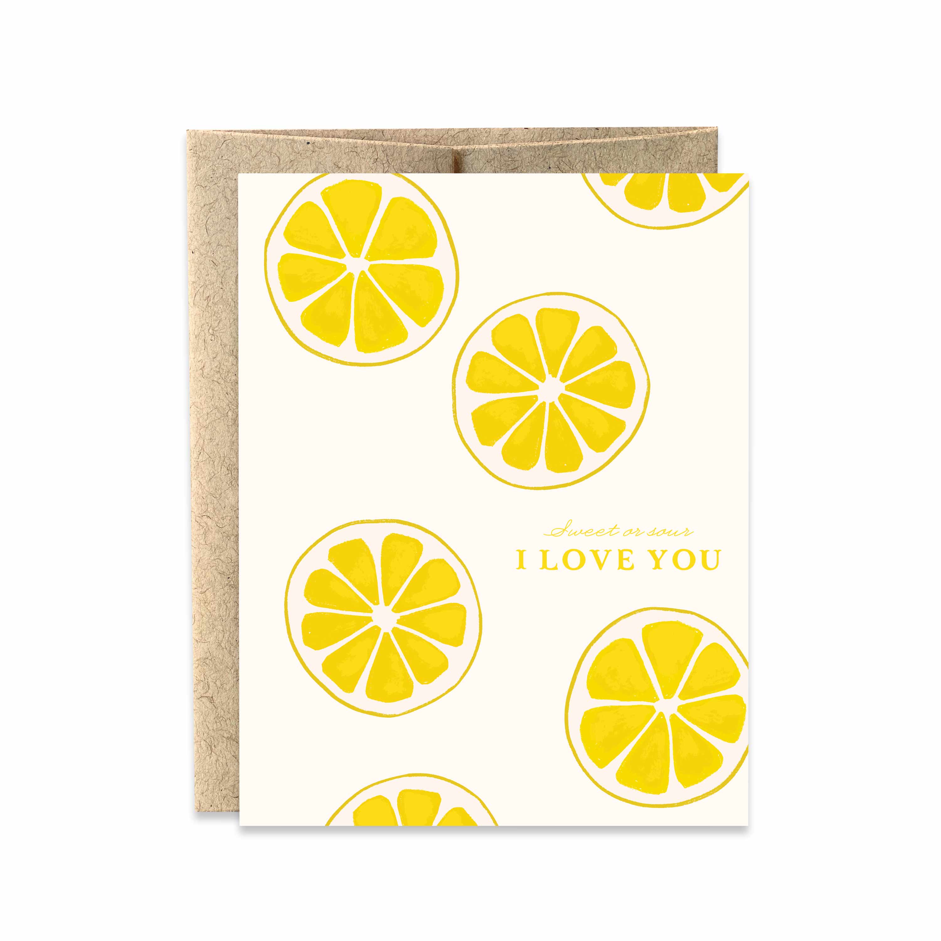 Reads "Sweet or sour I love you" with hand drawn lemon wedges.