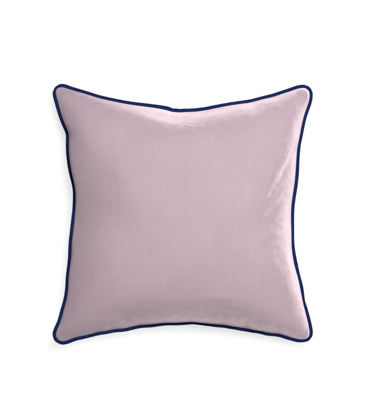 22"x22" Lilac Velvet Pillow w/ Navy Piping