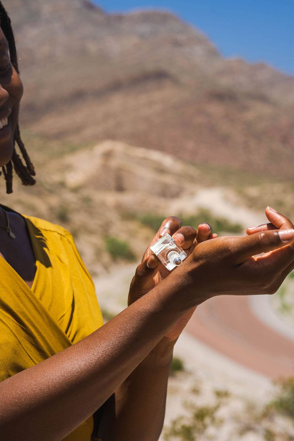 Journey into the agave fields of Mexico with Eau de Mezcal – fragrance inspired by the world’s most enrapturing spirit. Mezcal Negra is a blend of Smoked Woods & Mystical Spice. Smelling Notes: Sonoran Pine | Black Lime | Guaiacwood | Cajeta | Clary Sage. Glass bottle with silver roll-on applicator and cap. Includes box. Contains no alcohol; simply fragrance and essential oils in a fractionated coconut oil base. Hand-poured. 6.0ml/0.2fl oz | Gender-Inclusive A portion of every sale goes to Programa Vaca. This Mexico-based organization is helping to rebuild in the country's earthquake-affected rural areas with sustainable architecture and natural materials, for long term, positive human impact.