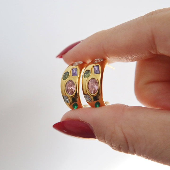 Mosaic Hoops | Multicolor Gem Hoop earring