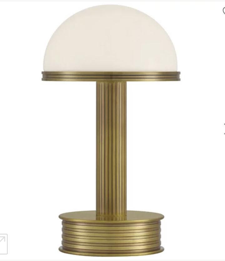 This portable illuminator runs on rechargeable power, offering the freedom to create perfect lighting wherever needed. A convenient side-mounted button controls operation, while an indicator light monitors battery status. The domed glass cap distributes a gentle glow, perfect for intimate settings or temporary task lighting. Additional charging bases are available separately, allowing multiple placement options throughout your space. This lamp proves that untethered lighting can maintain sophisticated design standards.