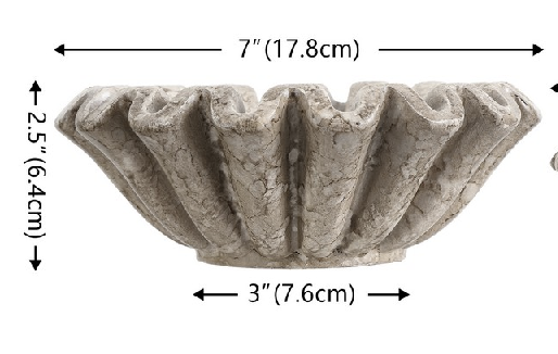 Soho Ruffle Bowl in elegant greige, crafted from resin. These bowls feature a unique ruffled edge design that adds texture and sophistication to any space. Their marble-like finish brings a touch of natural elegance, while the organic fluid shape enhances their aesthetic appeal. Perfect as decorative accents or catch-all trays, these bowls add charm and function effortlessly.Whether placed on a dining table, entryway, or living space, the Soho Ruffle Bowls create a cohesive look.