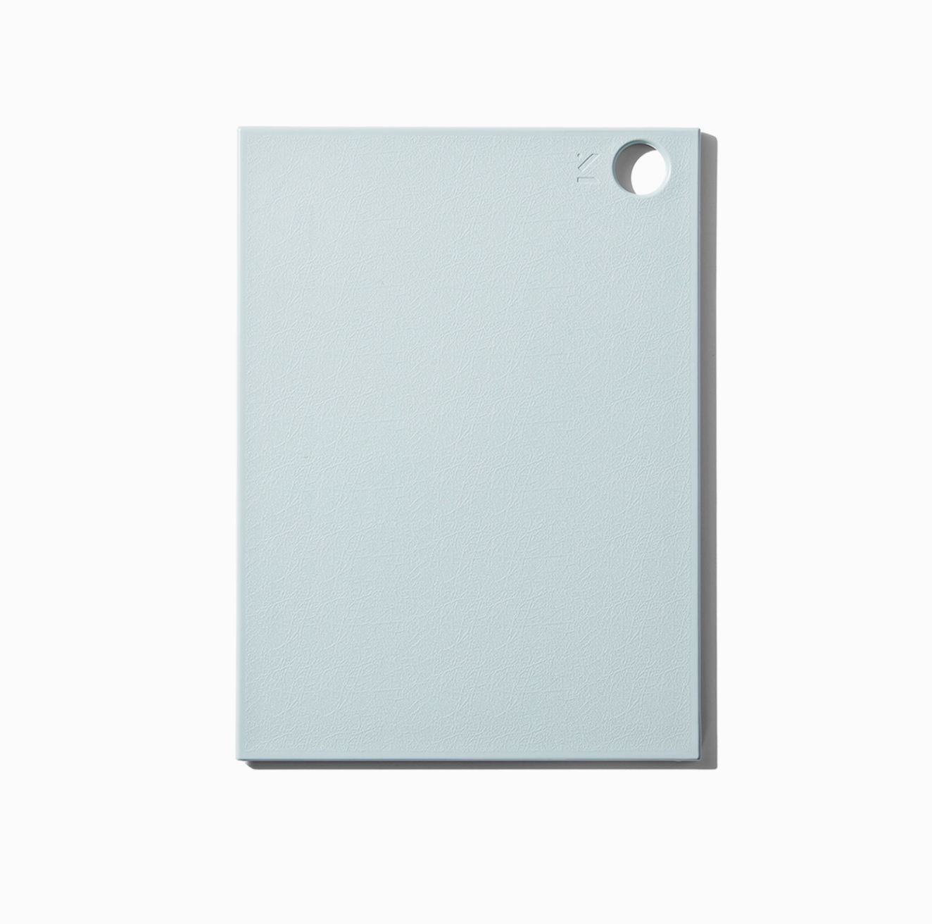 The internet's favorite recycled plastic cutting board. These colorful, BPA-free and dishwasher-safe cutting boards are made entirely of upcycled kitchen plastic scraps and renewable sugarcane for extra strength and durability (no warping ever). Plus, there's a little hole in the corner that makes it hangable for convenient storage. • Material: 75% recycled plastic, 25% renewable sugarcane